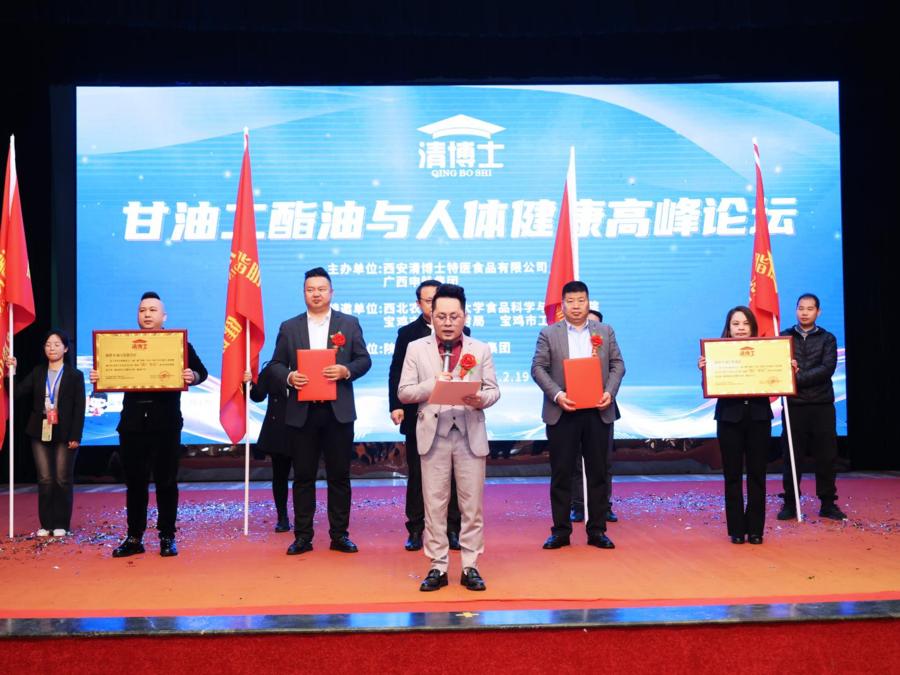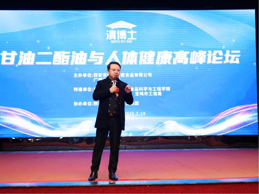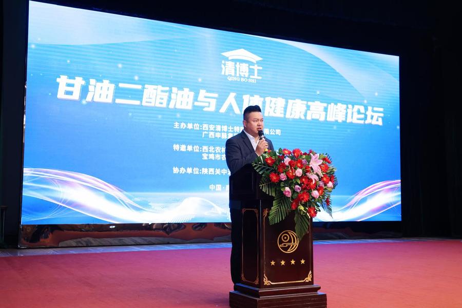活动现场,行业领导、国际知名专家学者、企业领军人物等各界大咖汇聚一堂,深入探讨清博士甘油二酯食用油的广阔市场前景与未来发展趋势。论坛中,通过现场视频西北农林科技大学食品科学与工程学院副院长、清博士首席科学家于修烛先生对功能性油脂——甘油二酯油方面的前沿研究成果的论述备受关注。清博士特医食品有限公司将科研成果成功转化为实际产品,广西申脉健康产业发展有限公司各会员单位将科技前沿产品的顶端优势与市场终端消费群体直接链接的做法,得到了与会人员的一致好评。