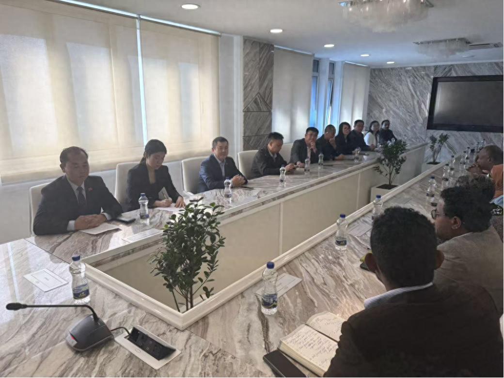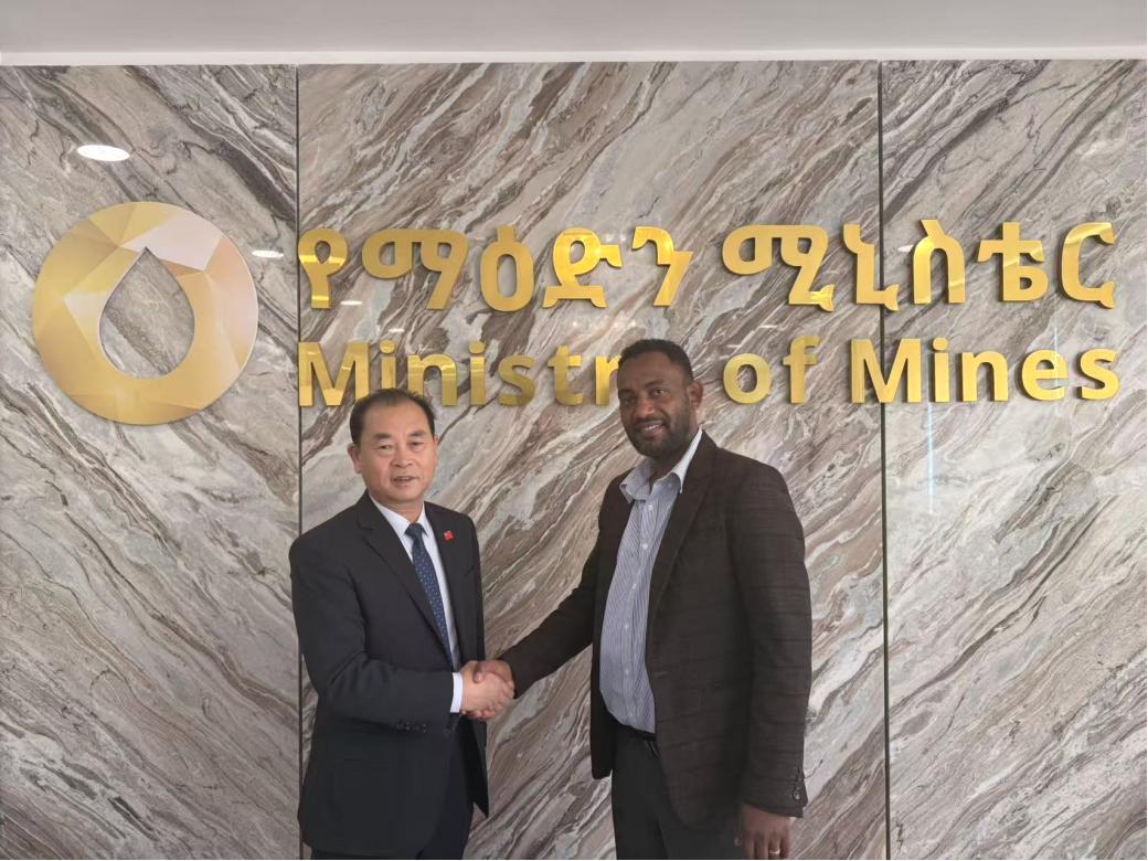 在与矿产能源部副部长的会谈中,副部长首先肯定了中埃建交 55 年来在基础设施等领域的合作成果,随后着重介绍了埃塞俄比亚矿产资源开发的整体布局与发展诉求。他表示,埃塞俄比亚矿产资源储量丰富,当前正着力推动矿产资源的规范化、绿色化开发,希望能借助中国的先进开采技术、加工工艺和市场渠道,将矿产资源优势转化为经济发展优势,同时欢迎中国企业参与到当地矿产资源勘探、开采及深加工项目中,实现资源开发与民生改善的协同推进。